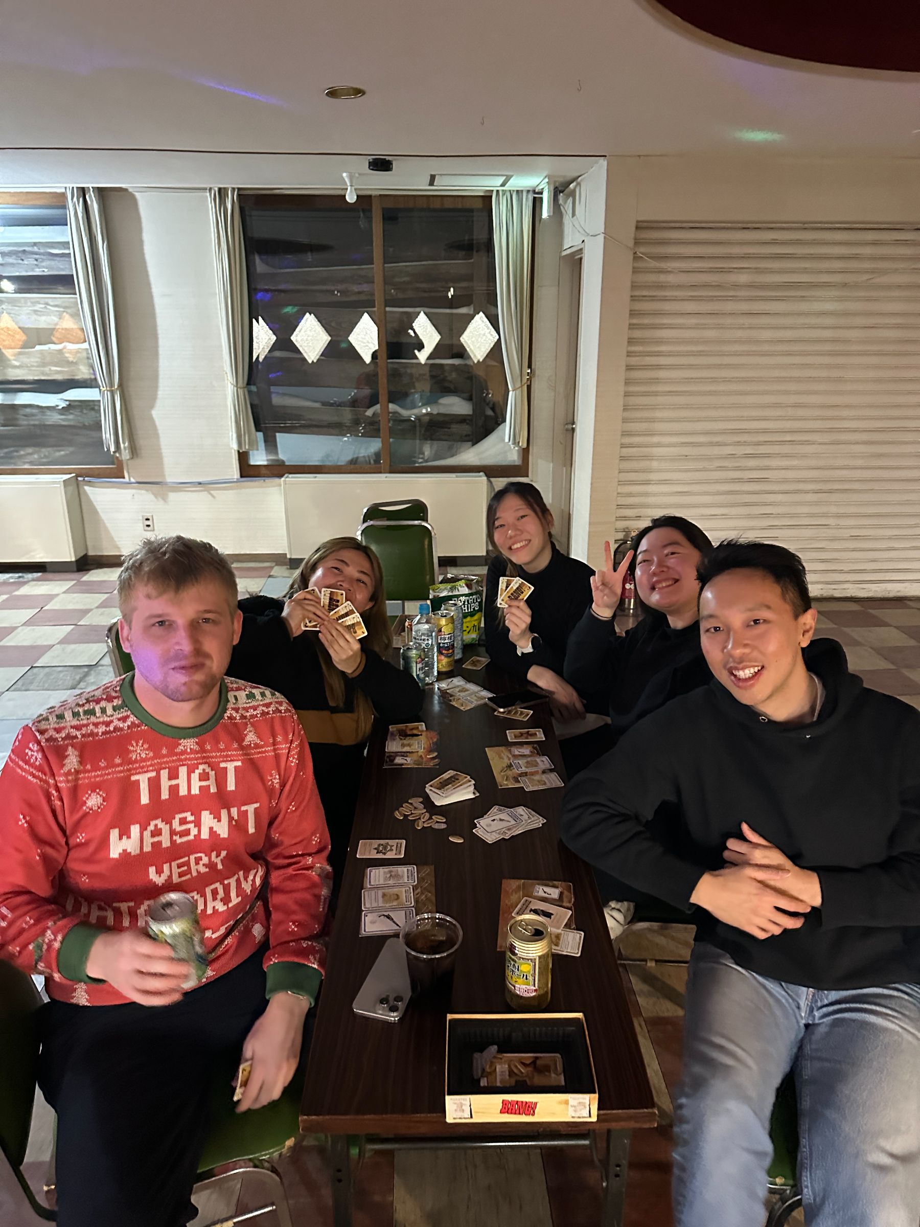 This was my first long weekend snowboarding and I was a little nervous to go but I had so much fun! I made lots of friends who I would run into across the resort and go snowboarding with. Despite the wind occasionally closing top area, there was always somewhere to go. I like how the hotel is located close to the yama no Eki so you have good access to the bus to get to other areas (although you can traverse anywhere). Had fun beating Daff and KG at blokus and getting panini revenge.
