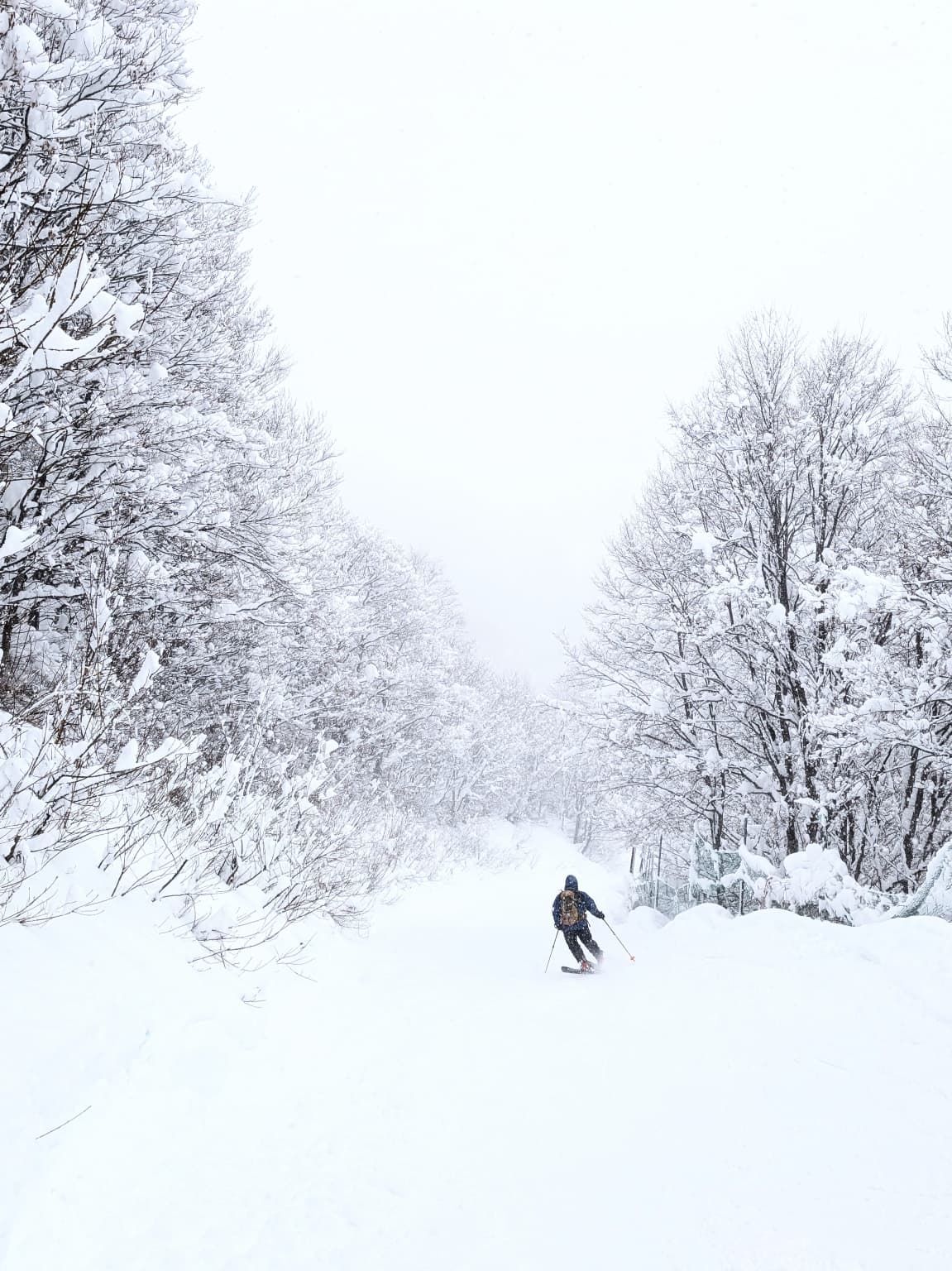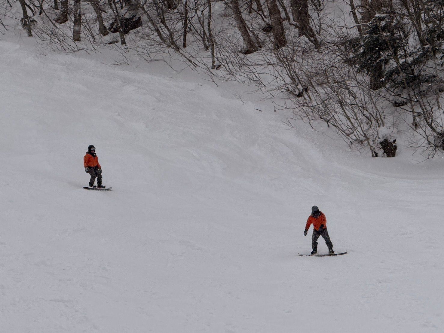 The hotel and staff was incredibly kind with a wonderful onsen. This was my second time on the Myoko trip, and on both occasions, Saturday night featured a special event at a nearby hotel. The slopes offer something for everyone, beginners and more advanced riders, and if you have a good eye, you might even spot a shrine on the slopes! The trip was in March and the resort was quite quiet, making some runs incredibly majestic.