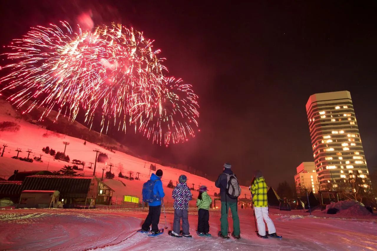 Skiing/boarding at Naeba & Kagura resorts. Peak season snow at two big resorts, fireworks show, night skiing, hot springs, after ski/board party, free ski & snowboard lessons and more!